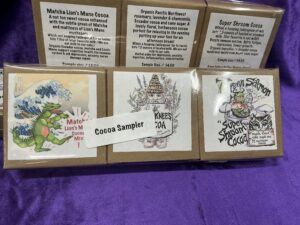 $12.50 Save 5% when you subscribe!A set of three mini boxes of our most popular cocoas: One each of Bees Knees, Matcha Lion’s Mane Cocoa and our ever popular-Supershroom Cocoa! Great gift idea!